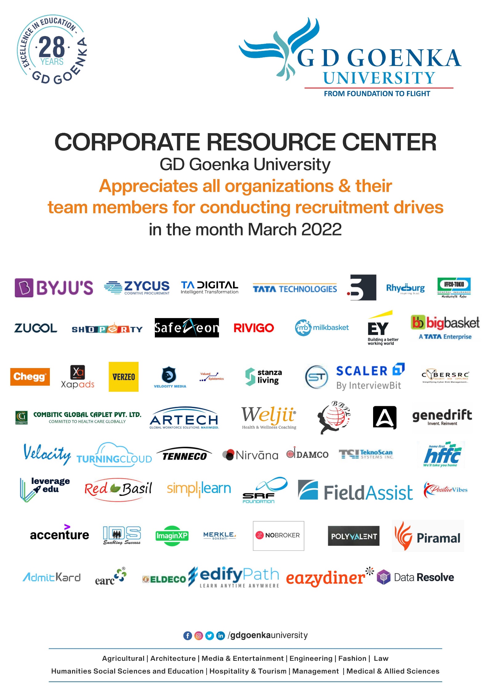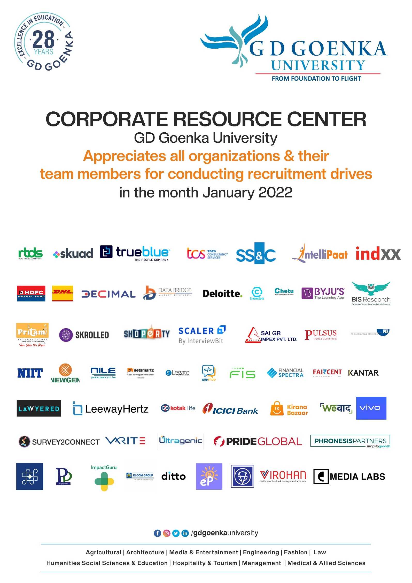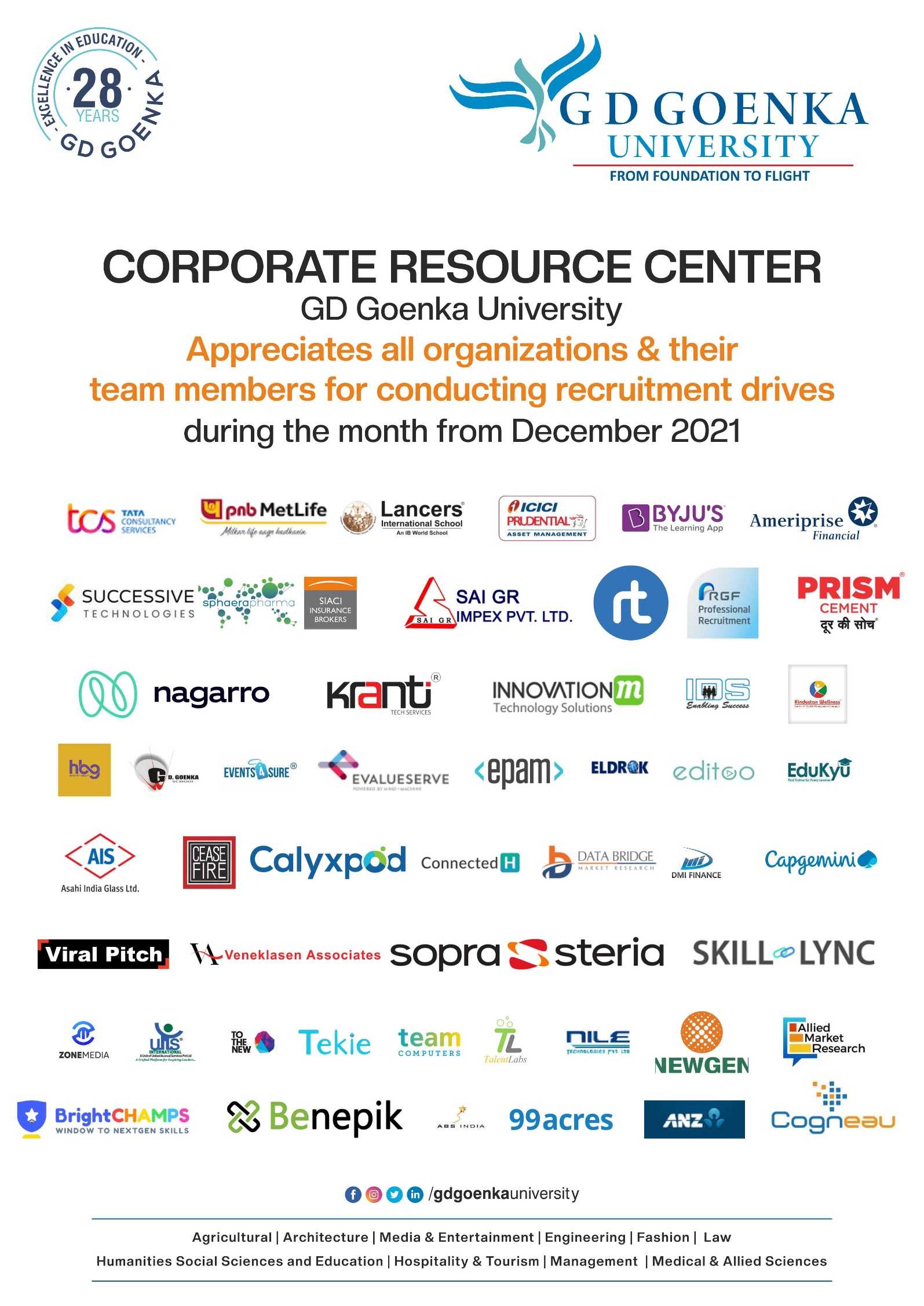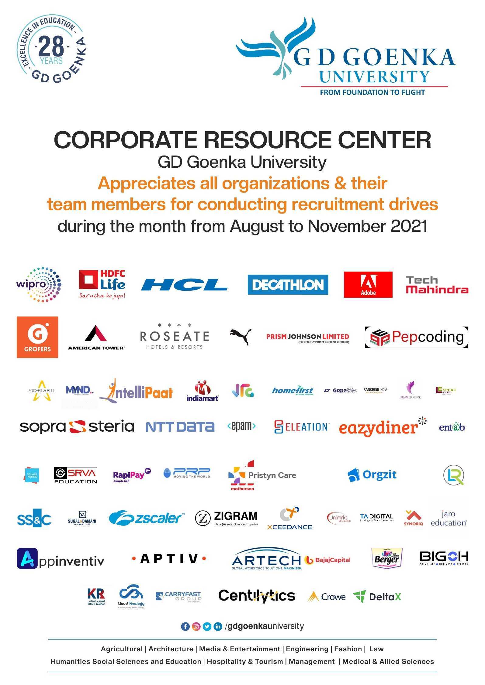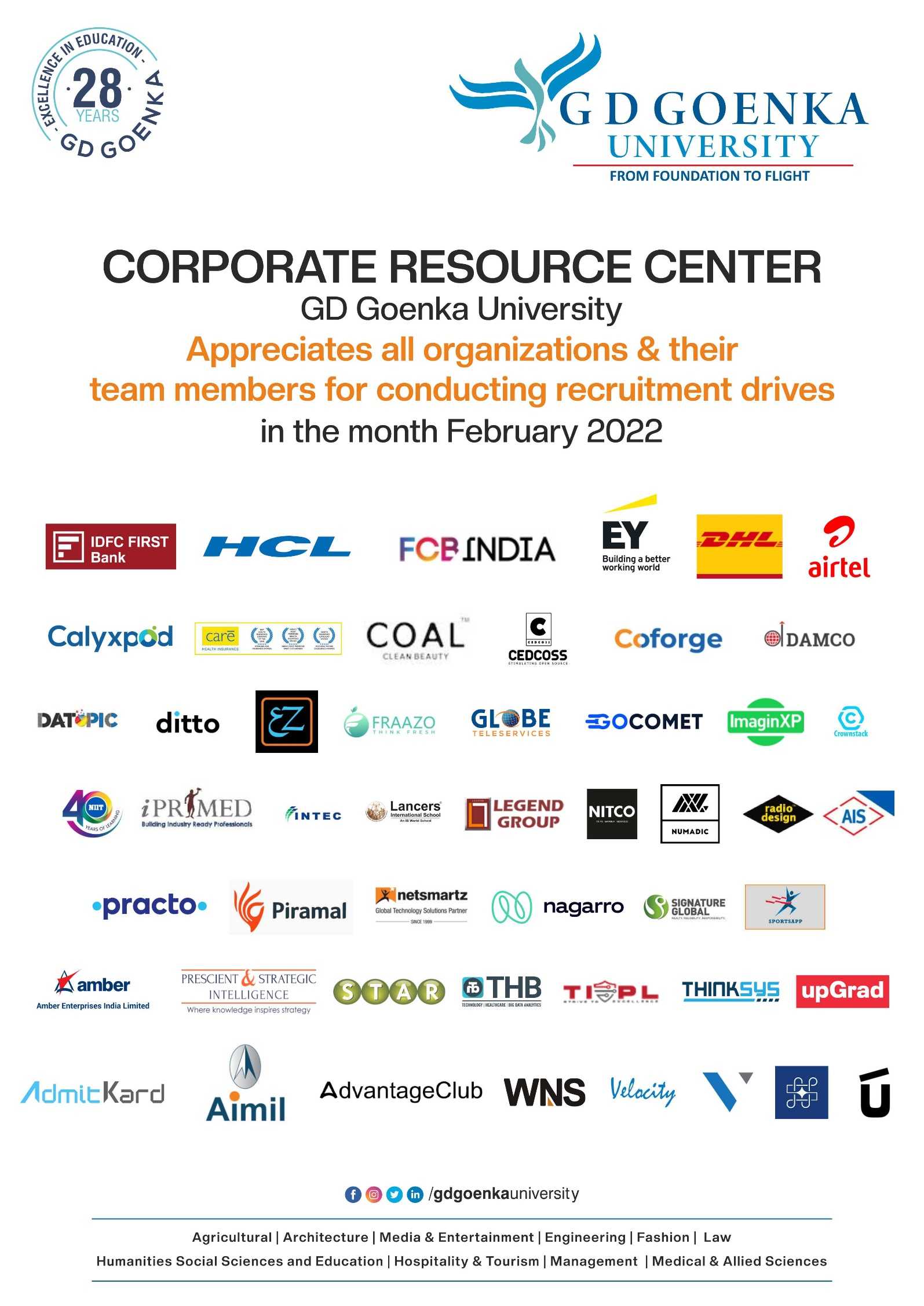 Looking for a university that consistently delivers outstanding placement opportunities? GD Goenka University (GDGU) is your ideal destination. The university's Corporate Resources Center facilitates remarkable placement achievements each year, underscoring our commitment to the success of our students.