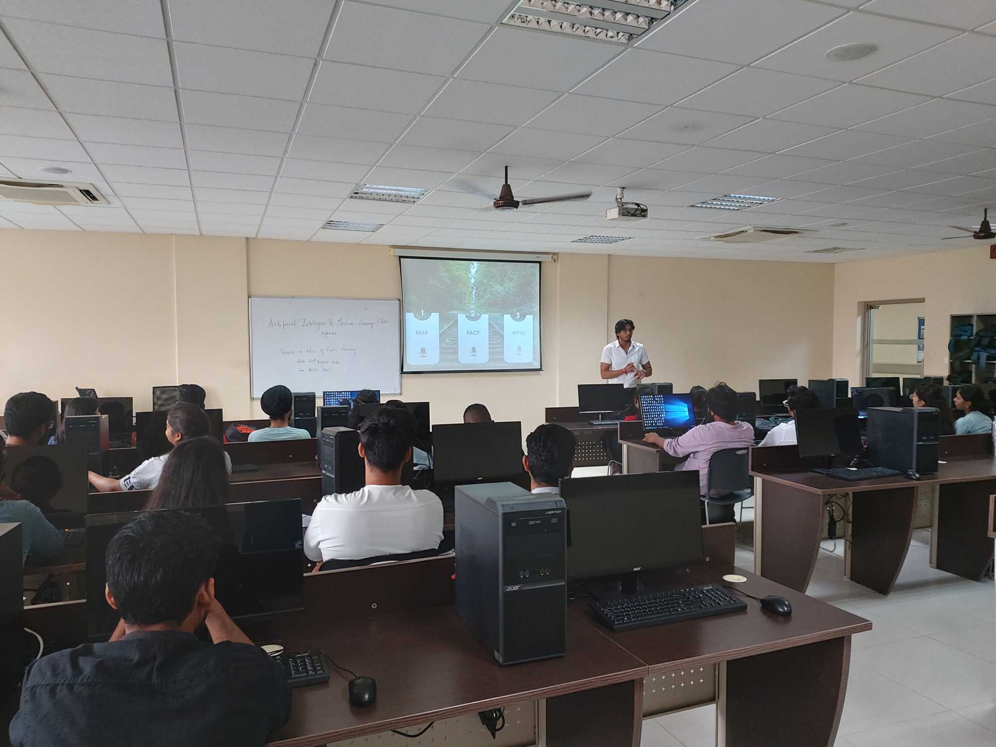 Artificial Intelligence and Machine Learning (AI & ML) club successfully conducted a face-to-face session on the topic ‘Become an Artist of Public Speaking’ on 24 th August, 2022 at School of Engineering and Sciences, GD Goenka University. The club activities are conducted periodically by the students and for the students. The session was delivered bySahil Garg and Manas Nand Mohan, the students of B.Tech (CSE- Artificial Intelligence and Machine Learning), V Semester, School of Engineering and Sciences, GD Goenka University. Sahil Gargcommenced the session by discussing the impact of words on the listener’s mind.Sahil explained about the significance of public speaking and detailed about the facts, fears and myths that may be faced by the speakers and the ways to overcome them. Manas Nand Mohan narrated about the points to ponder before addressing the mass. He also gave insights on the importance of taking pauses while communicating with the audience, the methods to make an interesting opening, the act of connecting with the audience throughout the session and on the ways to have a strong closing. The session concluded with interesting videos and details of references for the audiences to explore more on the topic. Ms. Manka Sharma, Ms. Alina Banerjee and Dr.Arpita NagpalFaculty Coordinators of AI & ML Club supervised the entire event.