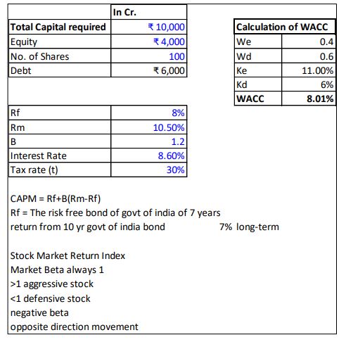 He began by explaining the colour coding in Excel: blue cells indicate manual input, black cells are automatically calculated, and green cells represent linked data. Mr. Arora then shared an Excel file containing an intrinsic valuation template. In the first spreadsheet, students calculated the Weighted Average Cost of Capital (WACC).