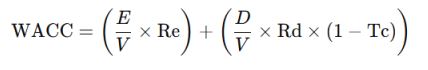 - Re = Cost of equity (calculated using Capital Asset Pricing Model)