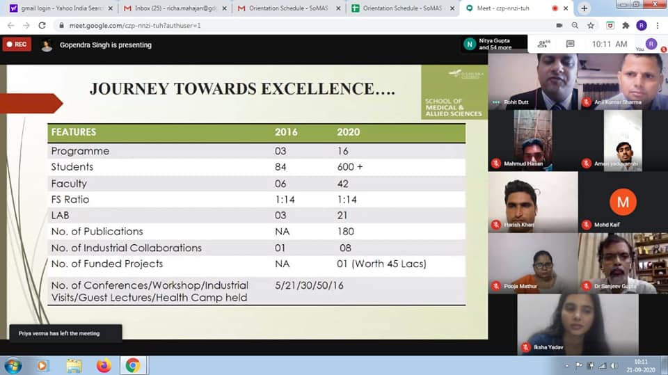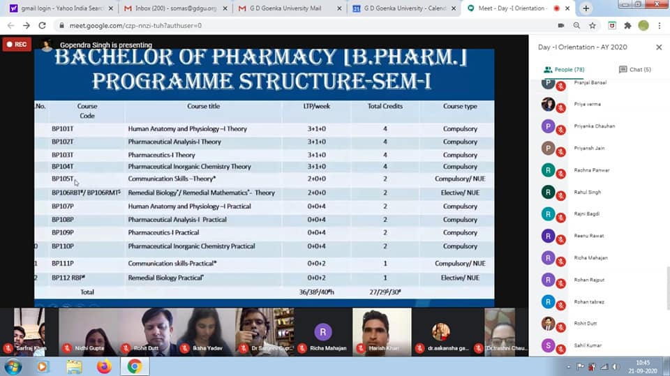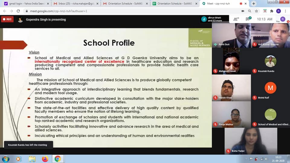 For enabling our E-Orientation week, the School of Medical and Allied Sciences, G D Goenka University organized a Live Webinar on September 23,2020, which discussed the genius behind the topic “Healthcare Professionals and the supply chain for Biologicals”. The expert Speaker for the Lecture was Dr. Sachin Dubey, Head/Deputy Director of Formulation, Analytical and Drug Product Development(Biologics), Glenmark Pharmaceuticals, S.A. Chemin de la Combeta La Chaux-de-Fonds, Switzerland. The session was diligently planned for our new students to get an all-rounded glimpse and insight about the Healthcare domain, that they have chosen for their new marked beginnings! Mr. Dubey shared his own professional journey in the Healthcare domain, from his lows to highs, which surely pumped motivation and inspired blood in the students. Further into the session, Mr. Dubey discussed the role of Biologics and how its supply chain and clinical administration is an elusive task and approach. The session also rendered articulate knowledge about the Cell therapy and the challenges encountered in its manufacturing. Mr. Dubey’s argument on how the supply chain requires dedicated Infrastructure for its storage and shipment hit the right rational cords with the audience towards the end of the session.