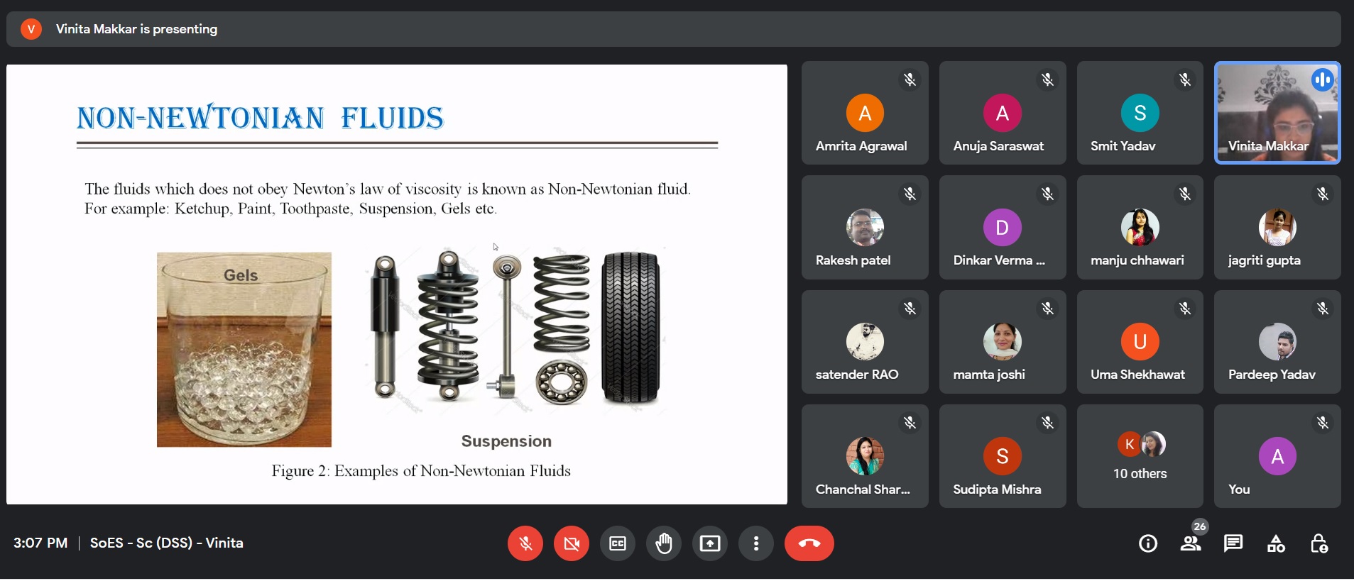 In this talk the scholar discussed about her approach of dealing with various mathematical tools to infer significant analysis about various physical parameters significant for nano fluid flow and specific three dimensional surface. The session was attended by scholars and faculty members. Dr. Anindita Roy Chowdhury, PhD Program Leader of the School moderated the session.