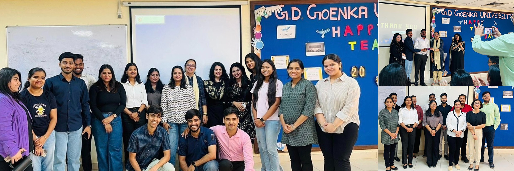 School of Education, G D Goenka University organizes various cultural and creative activities for its student-teachers in tune with the Gandhian ideals of education called the ‘Nai Talim’ (Basic Education). Craft-centered education is encouraged and productive manual work is placed at the centre of curriculum. Our student-teachers participate in productive work under conditions approximating to real-life situations. These activities are pedagogically linked to learning and simultaneously become the medium of holistic education as knowledge acquisition, developing values such as dignity of labour and skill formation by integrating ‘head, hand and heart’ for the student-teachers. One such activity that our student-teachers learnt during the first week of April, 2018 was ‘Tie and Dye’. A thoroughly enriching, engaging and vibrant hands –on learning experience for all!