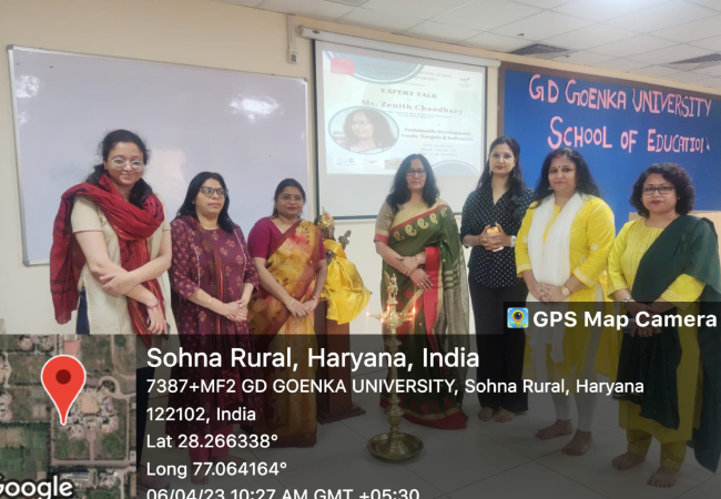 The School of Education, SOHSE, G.D. Goenka University organized a guest lecture on “Sustainable Developmental Goals: Target and Indicators” by Ms. Zenith Chaudhary who is currently working as Advisor, Swachh Bharat Mission to Municipal Corporation of Manesar.