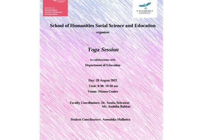 School of Humanities, Social Sciences and Education as part of the cultural week on 29 August 2022 organised fun and joyful yoga session in the morning. The yoga trainer Yosita Tuli has come to university for yoga session for the students. The week-long Culture Week programme provides an opportunity for people to deepen their understanding of cultural diversity. It's a time for celebration and recognition of the students as well as the school's achievements. Everyday Inclusion is the things we do, the way we behave, and how we interact with each other on a daily basis that supports our culture and behaviours to be a truly inclusive environment.The event saw more than 150 participants understand that yoga is not just a practice but a powerful tool with which one can attain harmony of mind, body, and soul. Yoga is a great way to soothe the mind & body as one feels a greater sense of freedom while doing yoga movements. Yoga possesses a unique ability to make the body alert but relaxed. Yoga doesn’t deal with physical wellness alone but it also has a great influence on mental and spiritual wellness.The vote of thanks was given by Dr. Sunita Sehrawat.