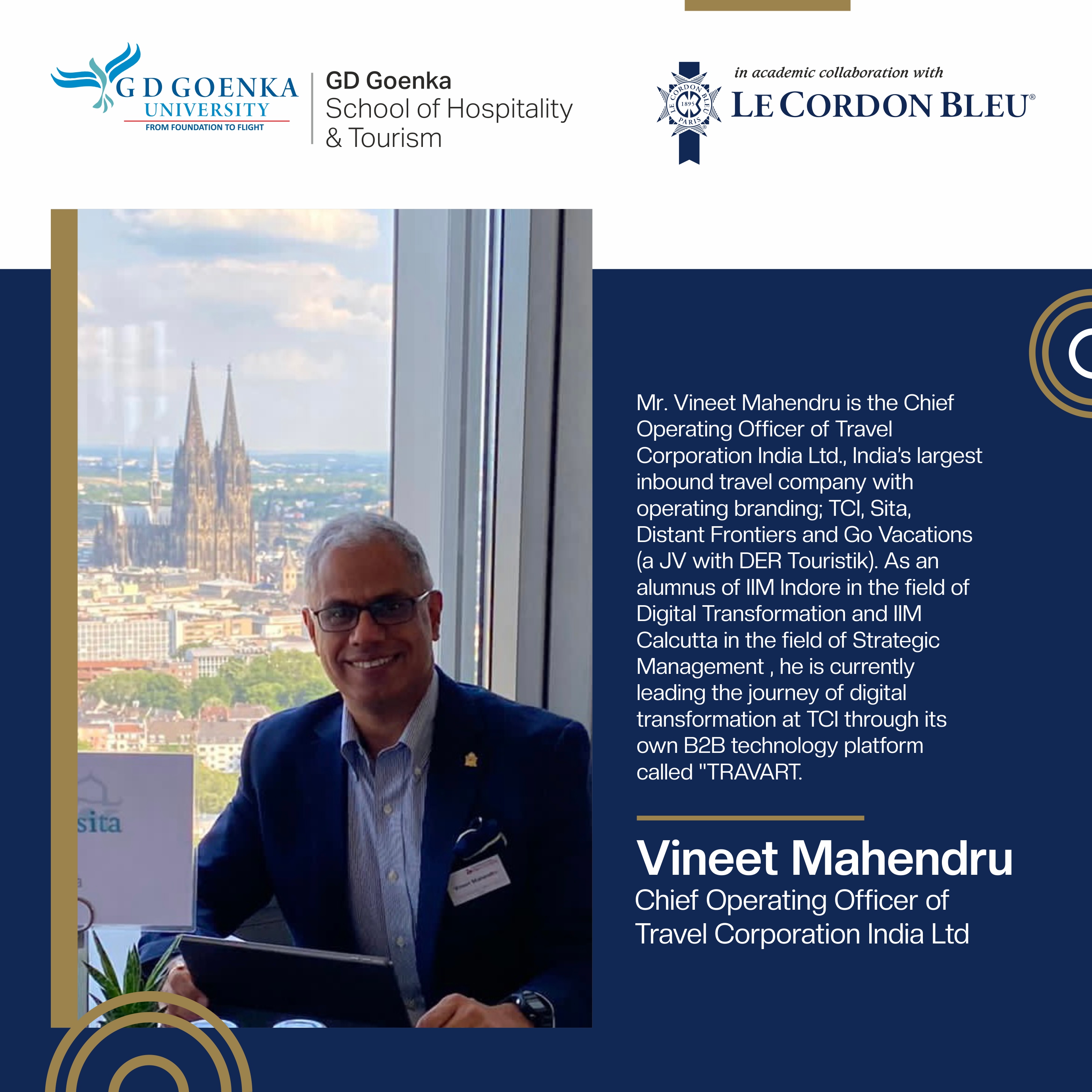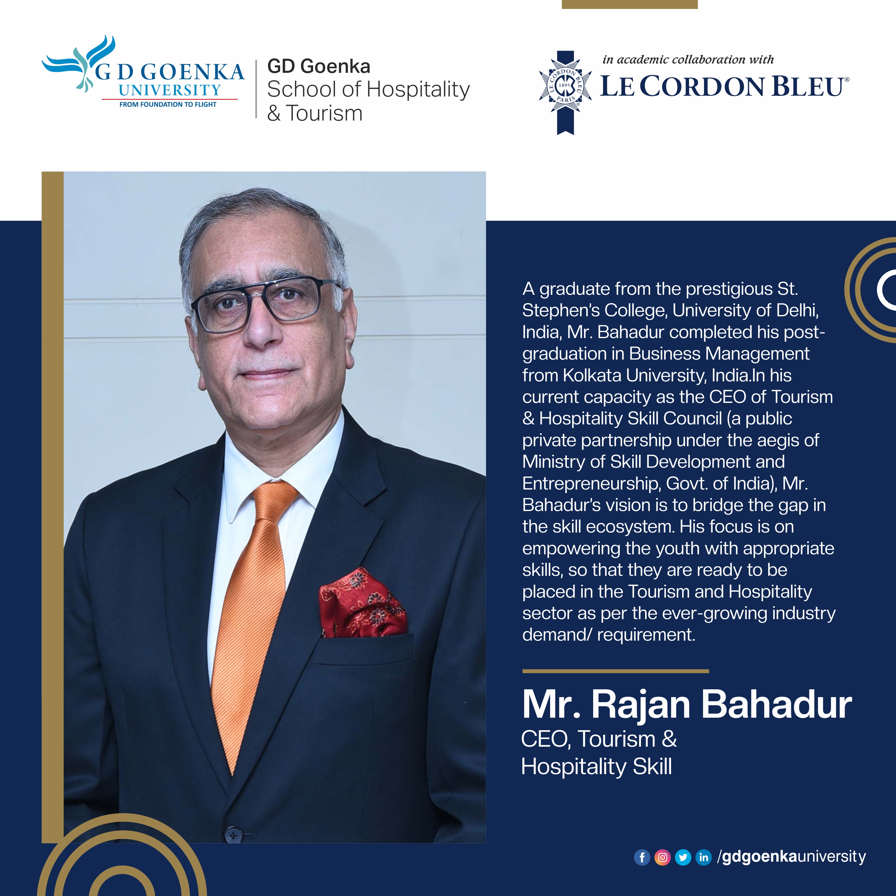 Le Cordon Bleu is a world-renowned international association of academic institutes, offering best culinary and hospitality-related education. It works in alliance with more than 35 academic institutes around the globe, one of them being G D Goenka University's School of Hospitality and Tourism.